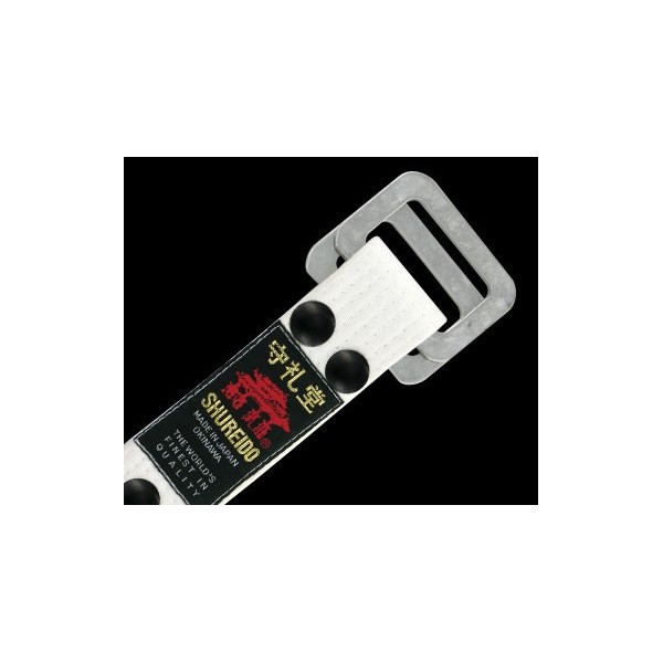 Ceinture coton créée à partir d'une ceinture Shureido© de karaté avec boutons pressions et boucles en aluminium hypoallergéniques interchangeables.
